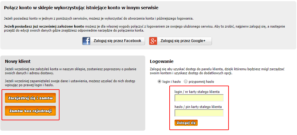Zaloguj się / załóż konto lub zamów bez rejestracji